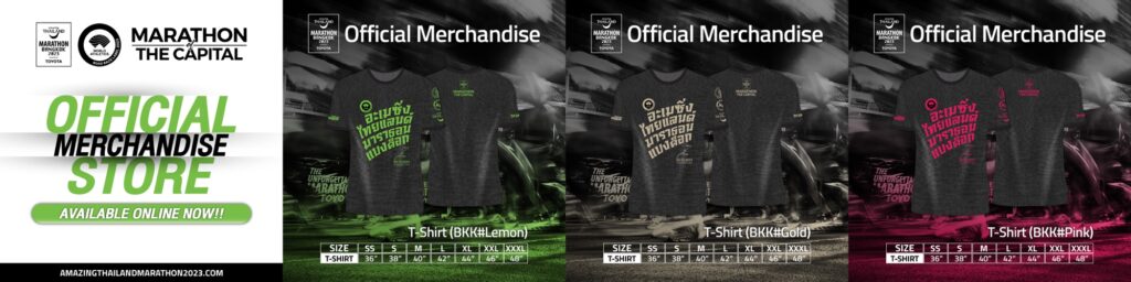ฝ่ายจัดการแข่งขัน ได้จัดทำเสื้อที่ระลึก สีสันสดใสสวยงาม ตามแบบฉบับของอะเมซิ่งไทยแลนด์มาราธอน ไว้จำหน่าย หลากหลายแบบ ท่านสามารถหาซื้อที่บริเวณงาน ในวันที่ 28-30 พย 67 ณ เซ็นทรัลเวิลด์ไลฟ์, ชั้น 8 ศูนย์การค้าเซ็นทรัลเวิลด์