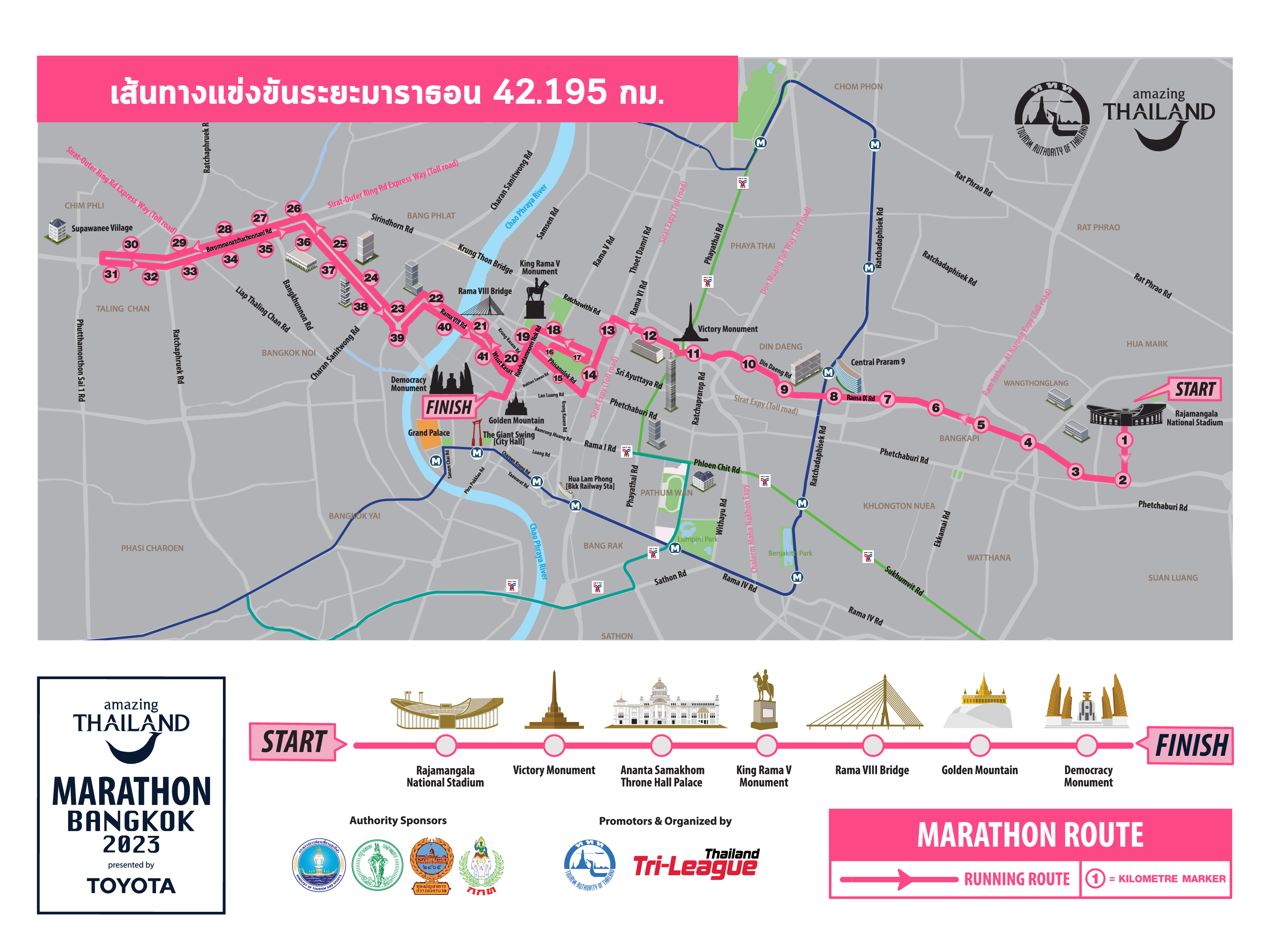 Welcome runners, volunteers, spectators, family, and friends. We are excited to once again be back in Bangkok for the 7th AMAZING THAILAND Marathon Bangkok 2024 presented by TOYOTA on 1st December 2024. Thank you for joining us! We look forward to bringing you a Marathon of the capital race experience and an exciting, fun-filled weekend. Our goal is to maximize the enjoyment for everyone at the race! So whether you are competing, volunteering, or spectating we intend for you to have a unforgettable memorable experience – AMAZING THAILAND.