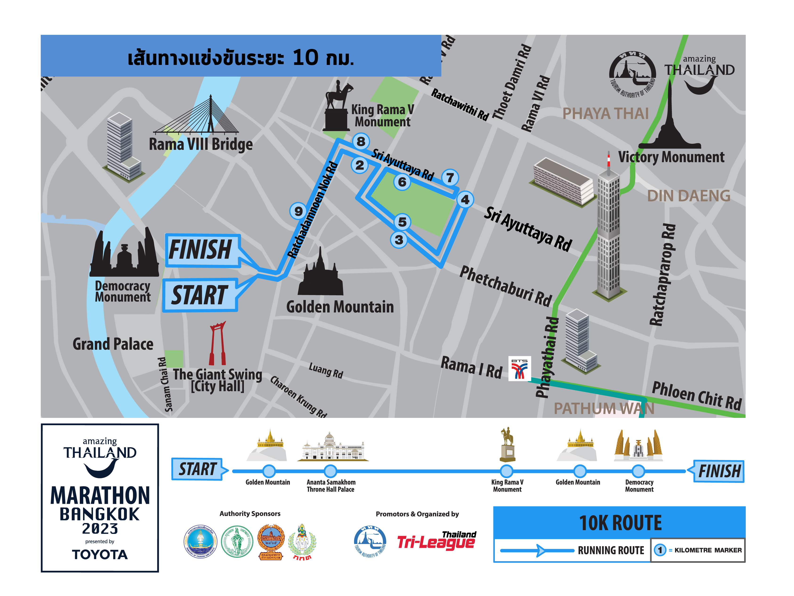 3) ระยะ MAMA 10 กม. ณ บริเวณถนนราชดำเนินใน (ฝั่งหน้าศาลฎีกา) ท้องสนามหลวง เวลา 06:00 น.