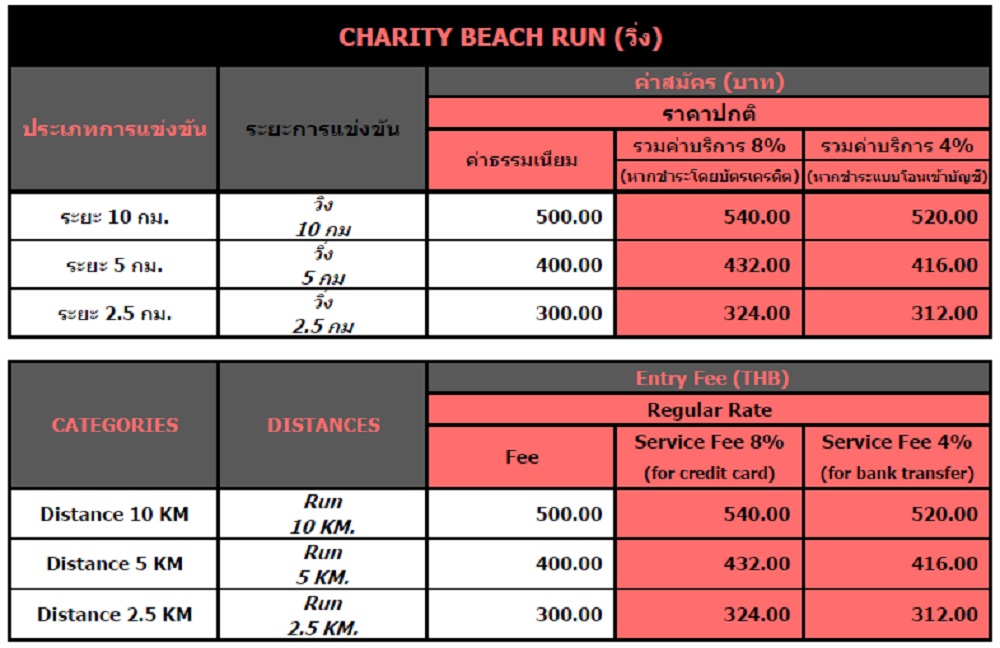 All finishers will receive a finisher medals. the trophies will be awarded to the first 5 in 10k and first 3 in 5k category. In addition we will have cash prizes to our top 5 of 10k finishers and top 3 of 5k finishers. The table below shows the price money amount in Thailand Baht (THB).