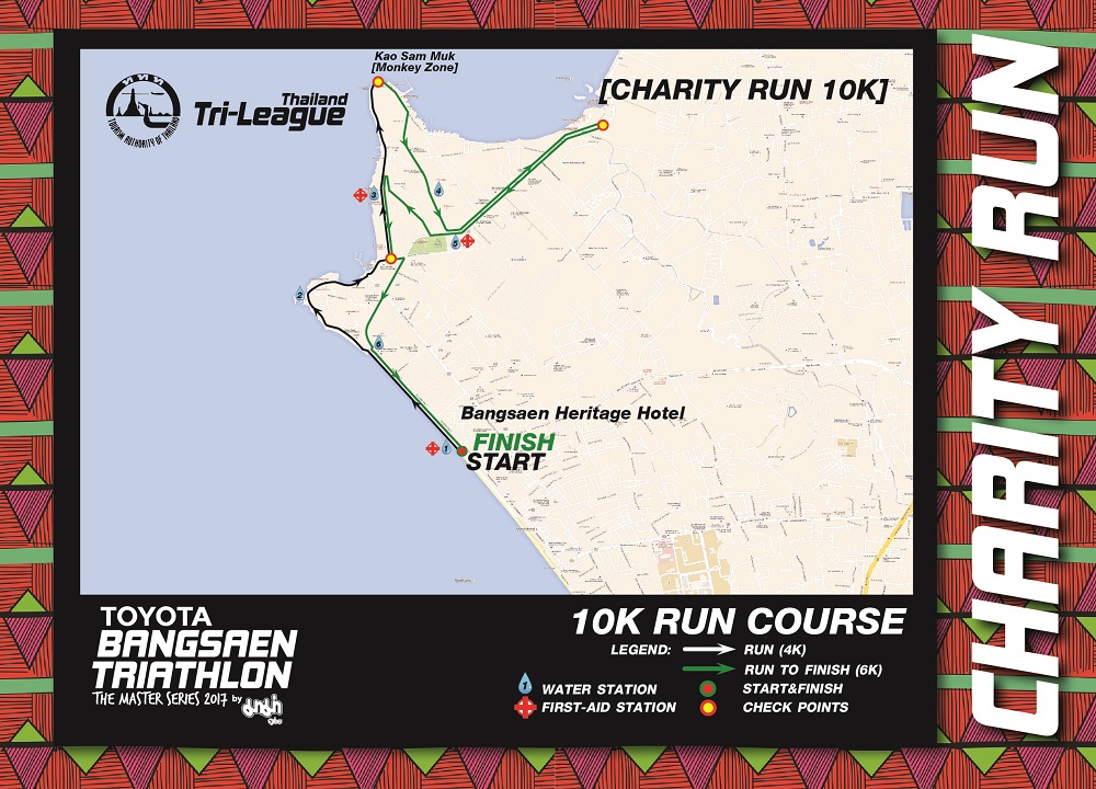 จากนั้นจะวิ่งผ่านหมู่บ้านชาวประมง และเลี้ยวขวาเข้าสู่จุดไฮไลท์ของงานคือ Monkey Zone หรือหมู่บ้านลิง (จุดถ่ายรูปสำคัญ) เมื่อทุกท่านวิ่งผ่านหมู่บ้านลิงแล้ว ท่านจะต้องเลี้ยวซ้ายเข้าสู่ถนนอ่างศิลา-เขาสามมุข มุ่งหน้าไปอ่างศิลา ถึงจุด U-turn วกกลับมาขึ้นเนินเขาขึ้นจุดชมวิว ที่ท่านจะมีโอกาสได้เห็นทัศนียภาพของแหลมแท่นที่สวยงามที่สุด เลี้ยวเข้าถนนอ่างศิลา-เขาสามมุขอีกครั้ง ก่อนจะวิ่งเข้าเส้นชัย ณ ถนนเลียบชายหาดบางแสน หน้าโรงแรมบางแสนเฮอร์ริเทจ พร้อมอาหาร-เครื่องดื่ม พร้อมความบันเทิงอีกมากมายที่ฝ่ายจัดการแข่งขันเตรียมไว้ให้ บริเวณหลังเส้นชัย