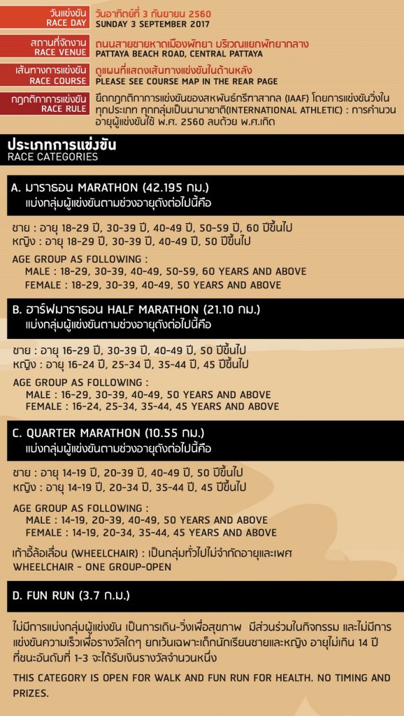 16.00-19.30 น. รับเบอร์แข่งขันและของที่ระลึก ณ เซ็นทรัลเฟสติวัล พัทยากลางจังหวัดชลบุรี