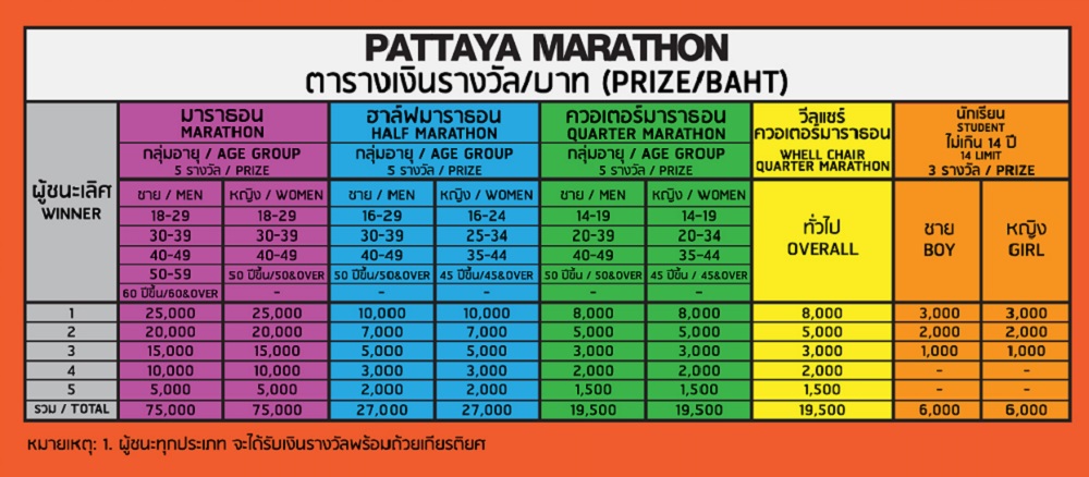 Total of 1.1 millions thai bath (THB) prize money for all runners is divided into five distances.