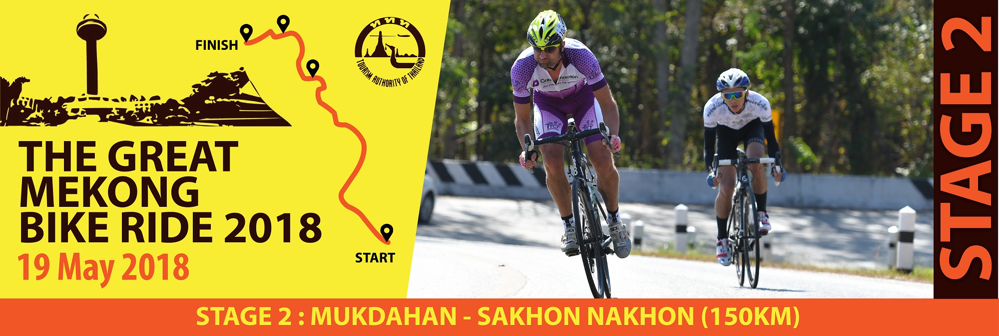 ขอต้อนรับผู้แข่งขันทุกท่าน สู่มหกรรมการแข่งขันจักรยานทางไกลแห่งลุ่มแม่น้ำโขง ประจำปี 2561 เทศกาลกีฬาบันเทิงรูปแบบใหม่ ที่กำลังได้รับความนิยมสูงสุด ในรายการ “The Great Mekong Bike Ride 2018” จัดขึ้นในวันศุกร์ เสาร์และอาทิตย์ที่ 18-20 พฤษภาคม 61 ณ จังหวัดนครพนม มุกดาหาร และสกลนคร ท่านจะได้สัมผัสกับความสนุก ความเร้าใจ กับประสบการณ์ใหม่ ในสถานที่ที่ยากจะลืมเลือน