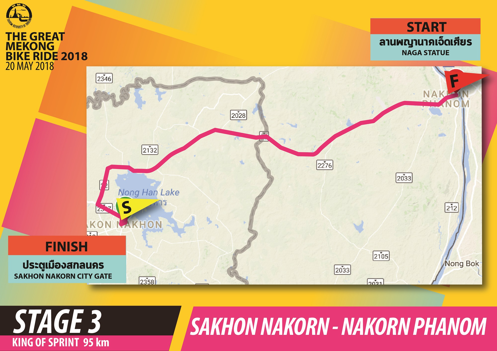 สเตจที่ 3: King of Speed (95KM) ปั่นบนถนนทางหลวงสายหลัก สามารถทำสปีดความเร็วได้สูงสุด จากสกลนครมุ่งสู่นครพนม